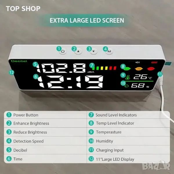 Стенен шумомер LYCEBELL, 30-130 dB голям LCD дисплей