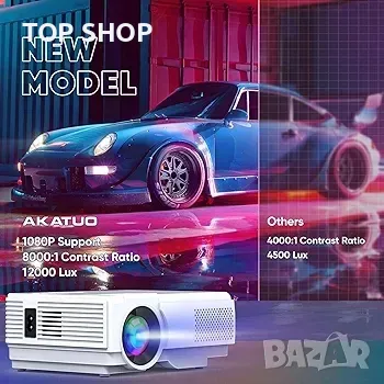 проекторът е оборудван с подобрена яркост от 12000L и разделителна способност с поддръжка на 1080P, предоставя кристално чисто изображение и възстановява по-сложни цветови детайли. Можете да гледате филми, без да се налага да сте в напълно тъмна стая. С брилянтни и реалистични цветове можете да се насладите на най-доброто изживяване при гледане с по-реалистични, динамични и живи изображения. Освен това предпазва очите, което е идеално за часове гледане на филми.