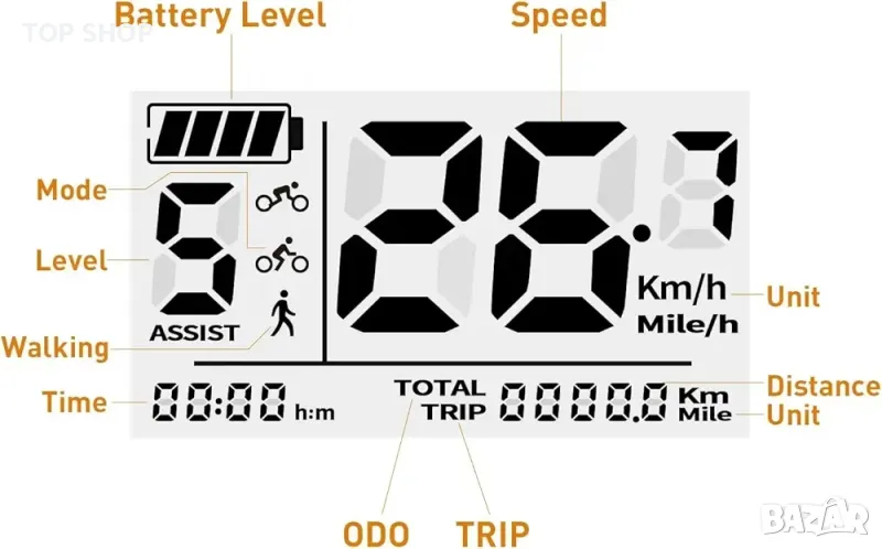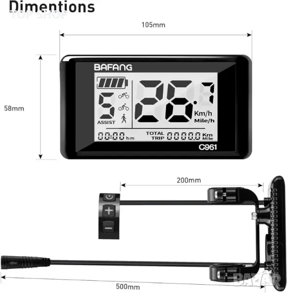 eBike C961 дисплей за BAFANG UART протокол, 0-3/0-5/0-9 нива на помощ