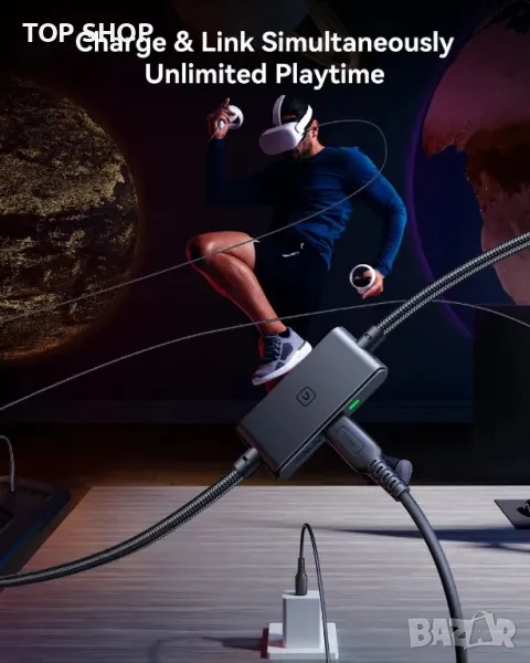 Oculus Quest 3/2/Pro] Нашата версия 2023 разполага с отделен USB-C порт за зареждане, позволяващ бързо захранване от 3 A за непрекъсната игра. Използвайте с PD/QC бърз адаптер за оптимална скорост на зареждане. Моля, обърнете внимание: Това е кабел за VR връзка и НЕ го използвайте за зареждане на вашия телефон, таблет, лаптоп и др.