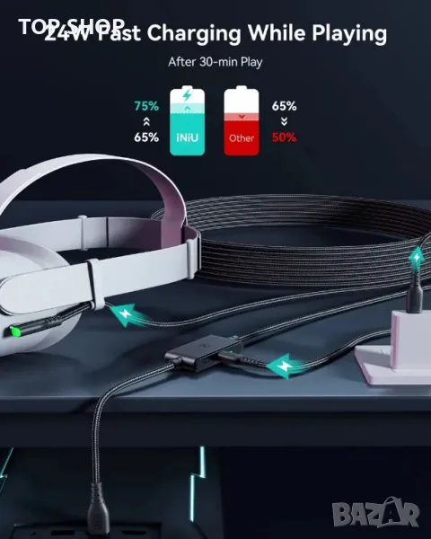 БЕЗОПАСНО зареждане чрез SmartProtect2.0] Вграденият кабел за връзка, чип SmartProtect2.0 балансира електричеството и синхронизирането на данни, контролира тока за безопасен обхват на батерията от около 78%, безопасно и достатъчно използване на енергия вече е във вашия Oculus.