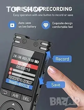 1536Kbps HD запис и намаляване на шума PCM: Благодарение на усъвършенстваната технология за намаляване на шума PCM, този цифров диктофон предлага качество на звука от 1536 Kbps. Заедно с динамично намаляване на шума и прецизно филтриране, той осигурява изключително ясни записи в различни среди. Нашият изключителен многопосочен стерео микрофон улавя отдалечени, но кристално чисти аудио сигнали, което го прави идеален за висококачествени записи.