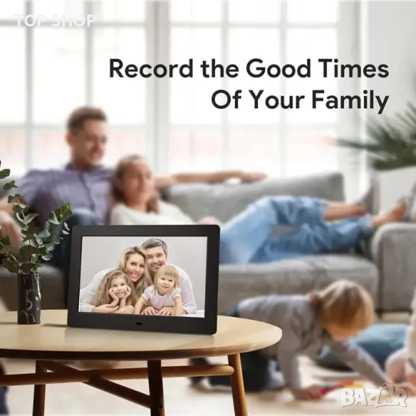 Висок дисплей: Устройството няма вградена памет и може да се показва чрез поставяне на USB или SD карта. Вашата скъпоценна снимка ще оживее във фото рамката на HD 1024x600 IPS дисплей с видим всеки детайл.