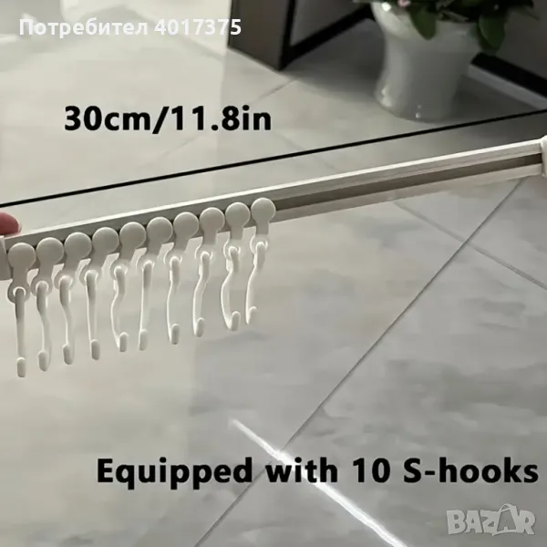 Лесно за Монтаж Кухненско Стелаж за Съхранение с Плъзгащи се Куки - Без Нужда от Пробиване, Залепваща Основа за Лесна Организация, Универсални Куки
