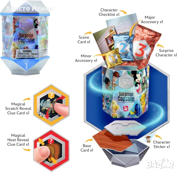 Отпразнувайте 100 години Disney, като разопаковате емблематичен герой от вашата собствена капсула изненада! Чрез разопаковащо пътешествие на откривателство ще откриете своя вълшебен герой на Дисни, като откриете 7 удивителни изненади!
