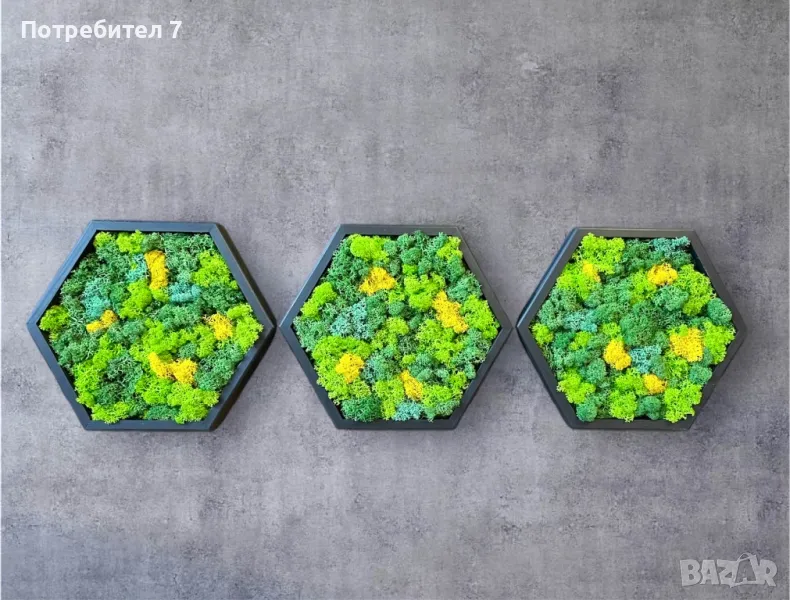 Шестоъгълно пано със скандинавски мъх → Обява 48750551