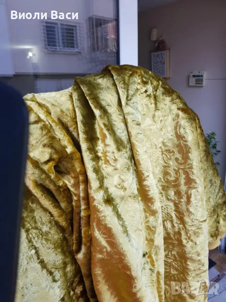 Два броя плюшени завеси затъмняващи , ширина на всяка 140 см и дължина на всяка 225 см цвят злато