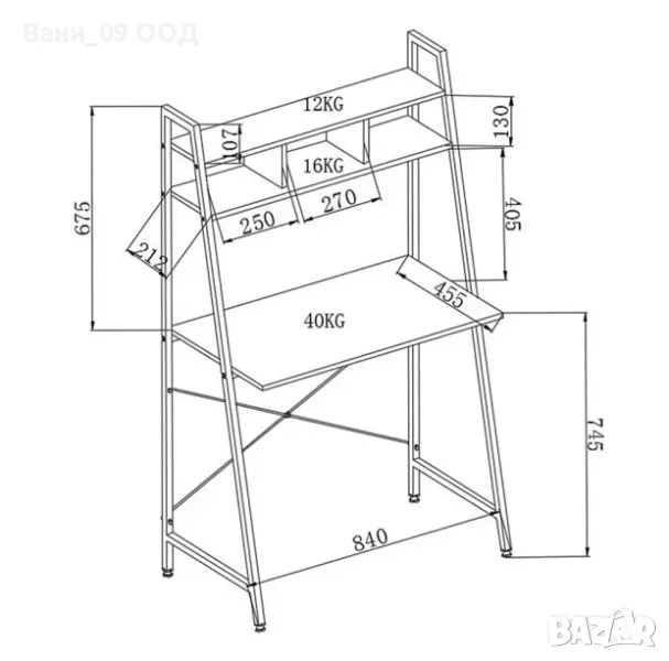 - Материал: Метална основа в черен цвят. Плотове и рафтове в декор Дъб Сонома