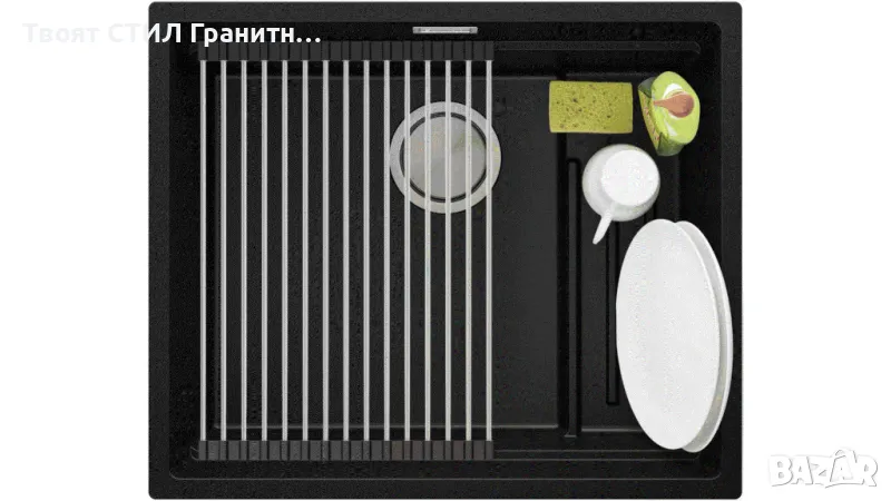 Черна гранитна мивка за вграждане под плот Прага 60 Level 560 x 470 мм → Обява 48751817
