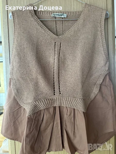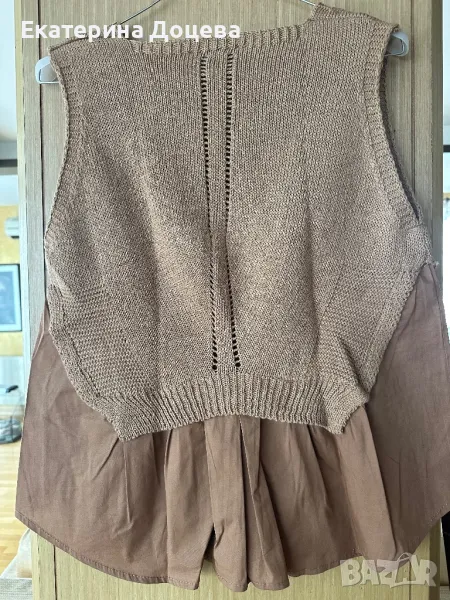 Топ, комбинация от плетиво и плат в оригинално решение. Лесно за комбиниране. Размер М.