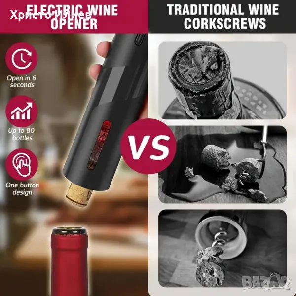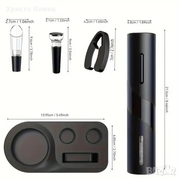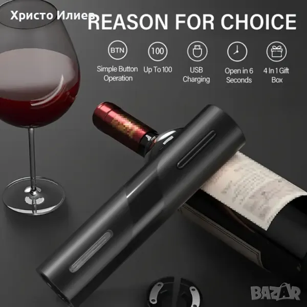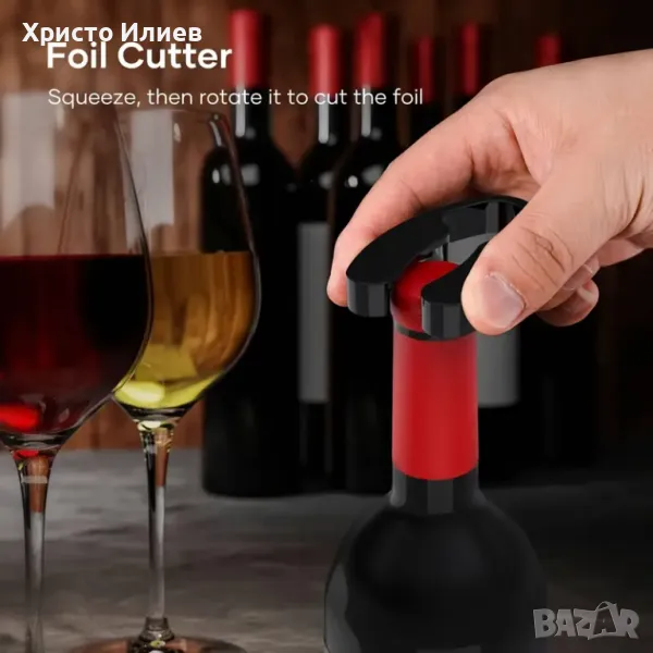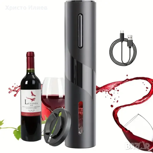 Електрическа отварачка за бутилки вино автоматичен тирбушон Подаръчен комплект 4 части USB зареждане