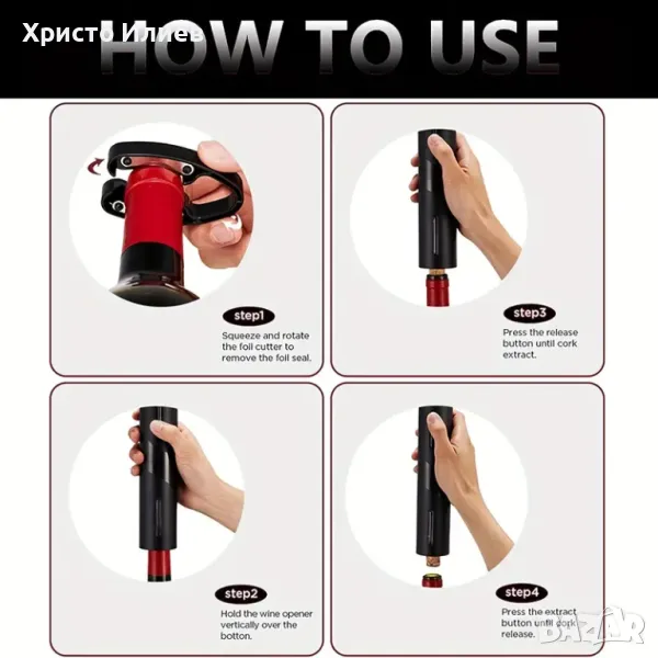 - Удобно съхранение: Нашата отварачка за бутилки има красива основа. Можете да съхранявате и показвате вашата електрическа отварачка за бутилки. Държачът може да съхранява всички аксесоари за вино и да го поддържа подреден в хладилника за вино/рафта/бюфета/бара/кухнята/всекидневната и т.н.