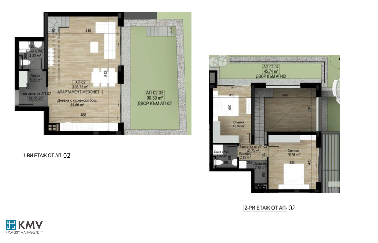 Мезонетът е с изложение запад/север. Площта му е 105,70 кв.м