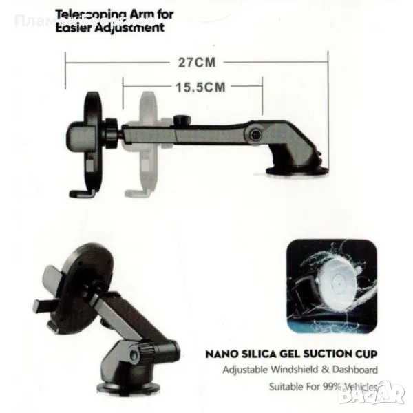 6.Има смукателна основа, която може да се монтира върху стъкло и табло