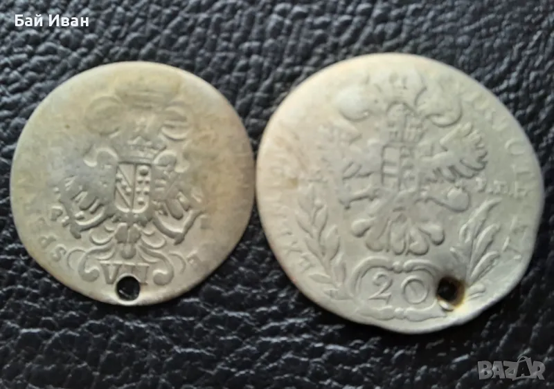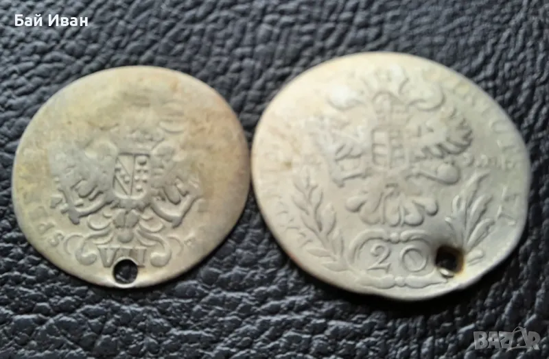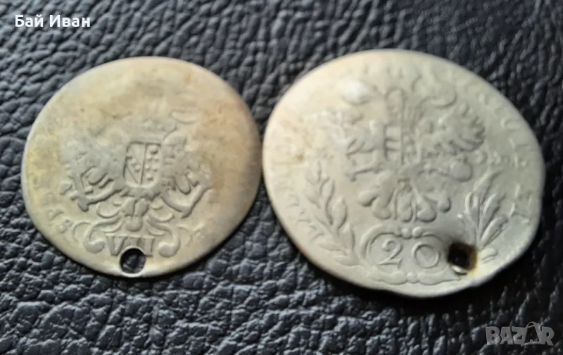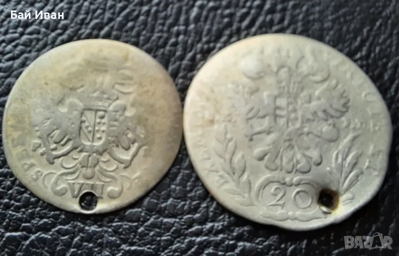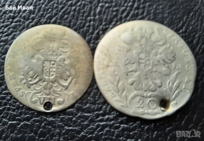 Стара сребърна монета/и 12 кройцера Бавария и 20 кройцера Австрия → Обява 48753680