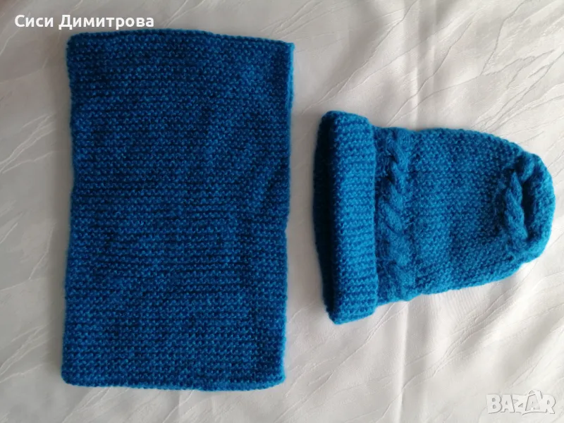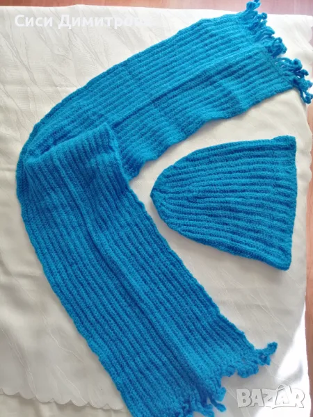 Шапка и шал комплект, ръчно плетиво → Обява 48753743