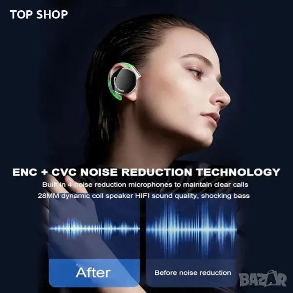 Слушалки с щипка Bluetooth V5.3, безжични слушалки с отворено ухо и кукички за уши