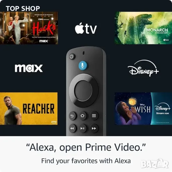Натиснете бутон, за да взаимодействате с Alexa - Използвайте гласа си, за да търсите съдържание и да започнете възпроизвеждане в множество приложения.