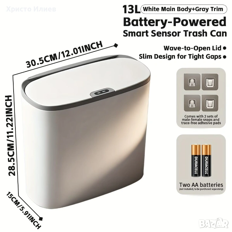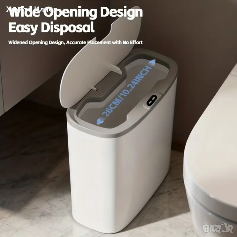 Захранва се на батерии (с изключение на батериите), издържа дълго време. Интелигентен сензорен капак за бърза и точна реакция, няма нужда да се навеждате.
