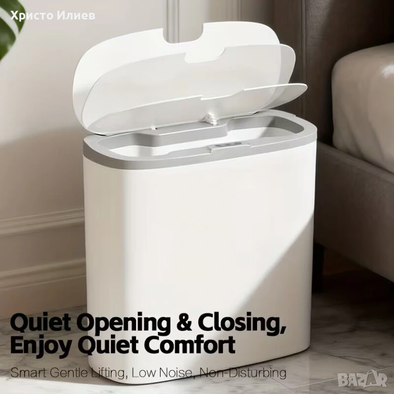 Без докосване - Оборудван със сензор за движение, капакът се отваря автоматично, когато махнете с ръка над него.