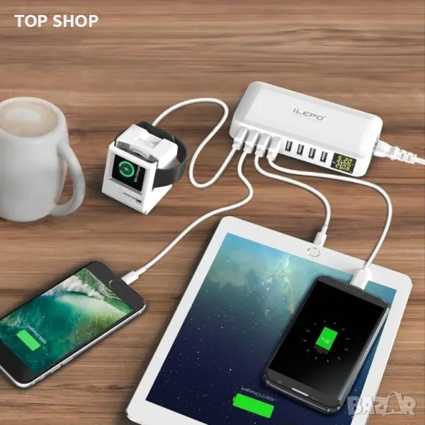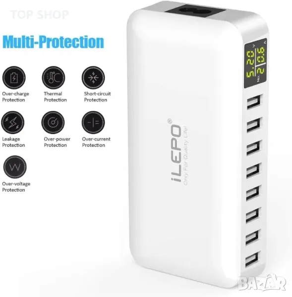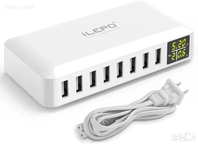 iLepo 8-портова USB зарядна станция за зареждане на множество устройства с LED дисплей
