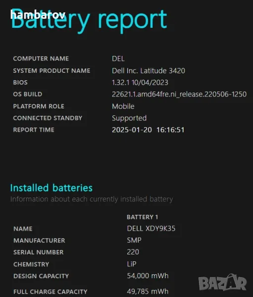 С гояма Батерията от 54 Wh на 92% от оригиналния капацитет
