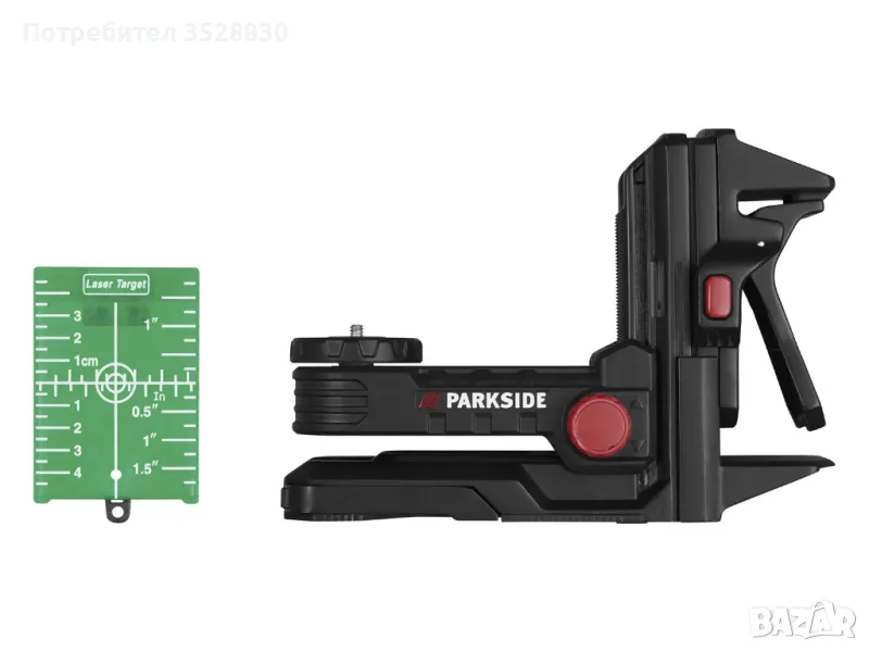 вкл. лазерна мишена със скала в сантиметри и инчове за маркиране на точки извън лазерната линия