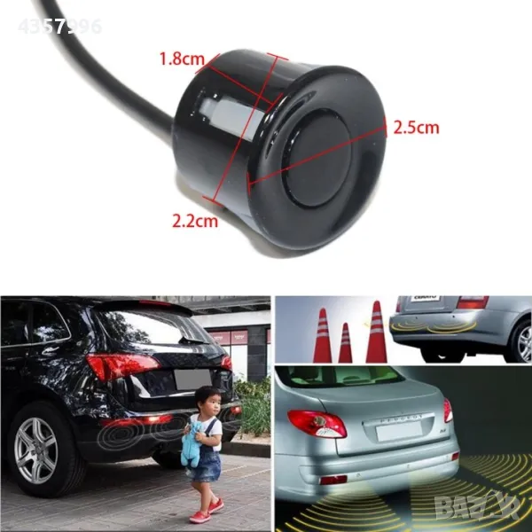 Ултразвуков парктроник с 4 сензора, звукова и светлинна сигнализация, LED Дисплей.