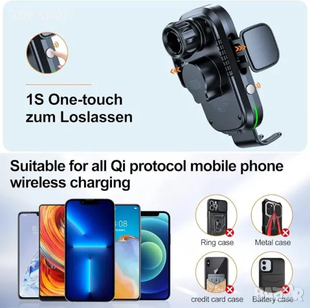 WOFALO 15W Qi Безжична стойка за зарядно за кола