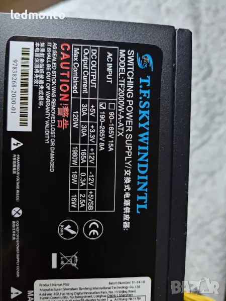 Захранване T.F.SKYWINDINTL 2000W ATX PSU 80 Plus Gold майнинг и сървъри minig