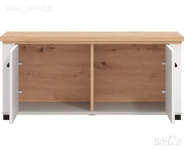 - 2 врати на панти от MDF в бял мат с черни дръжки;