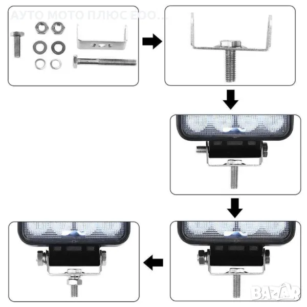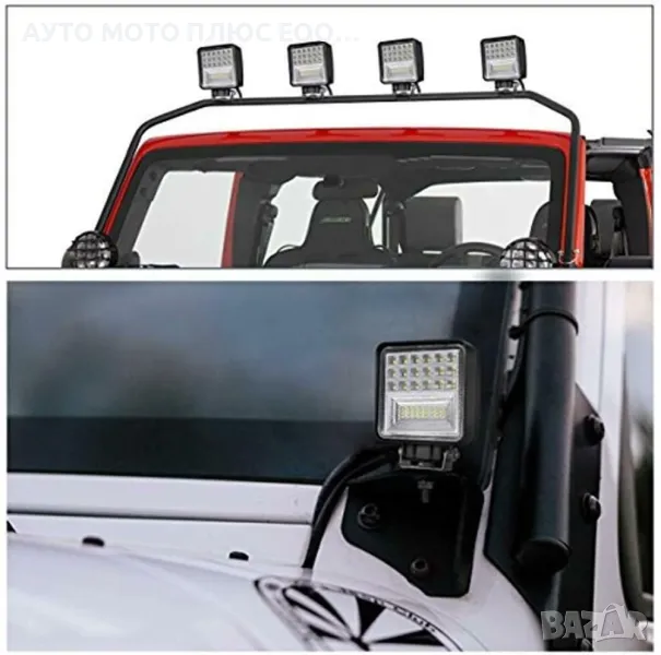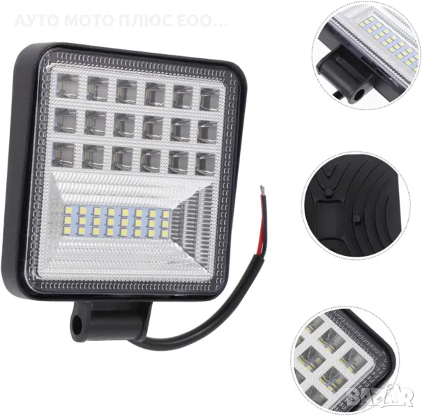Универсален 42 LED диоден халоген с алуминиев корпус, който подобрява циркулацията на въздуха и охлажда по-бързо. Халогена се закрепя за превозното средство с помощта на неръждаеми скоби с винтове, които позволява той да се регулира по желан от вас ъгъл на осветяване. Задната му оребрена част разсейва топлината и охлажда корпуса. Подходящ за джипове, авт, бъги, трактори, камиони и други.
