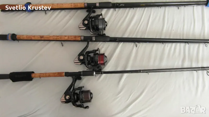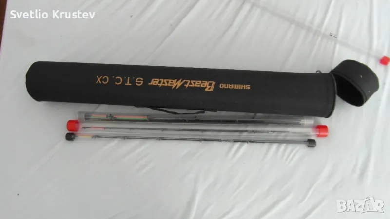 Мулти Фидер Шимано Бийстмастер комерсиал 2.70-3.30,70гр с два оригинални карбонови върха.С макара Престън Екстремити 520 с резервна шпула навити монофил на десетина риболова и плетено влакно на един риболов .
