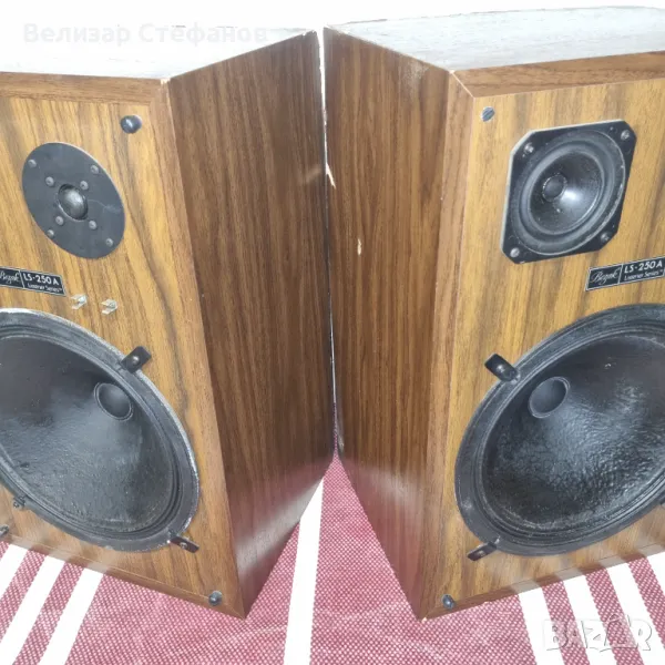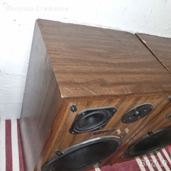 Здравейте, продавам колекционерски американски тонколони Bozak LS-250A. Технически са перфектни, козметично са за лек ремонт - липсва единият грил. За който желае да ги възстанови до перфектен вид, техническите характеристики са: