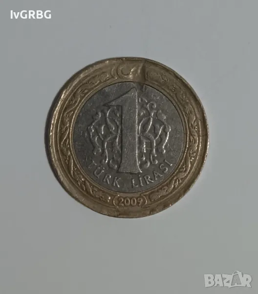 1 лира Турция 2009 Турска монета 1 лира 2009 Турция → Обява 48762009