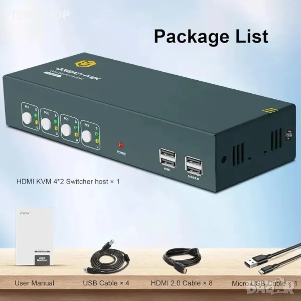 HDMI KVM превключвател 2 монитора 4 компютъра