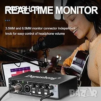 PC/DC 5V IN двоен превключвател за захранване. Има USB 2.0 интерфейс, който поддържа връзка с компютър или iOS устройство, което може да записва директно или захранва. Когато се свързвате към iPad или друго устройство с недостатъчна мощност на шината, можете да превключите захранването към 5V DC порт, за да получите захранване. Можете да свържете стандартен USB захранващ адаптер или външна USB мобилна батерия, за да осигурите стабилно захранване. Разнообразните методи за захранване ви позволяват да използвате звуковата карта по всяко време и навсякъде.