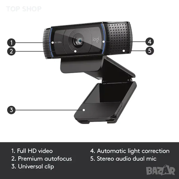 **Ключови думи:** Web камера, Logitech HD Pro C920, Full HD, Черна, HD леща, Автофокус, Стереофоника, Видеозаписи, Повиквания.