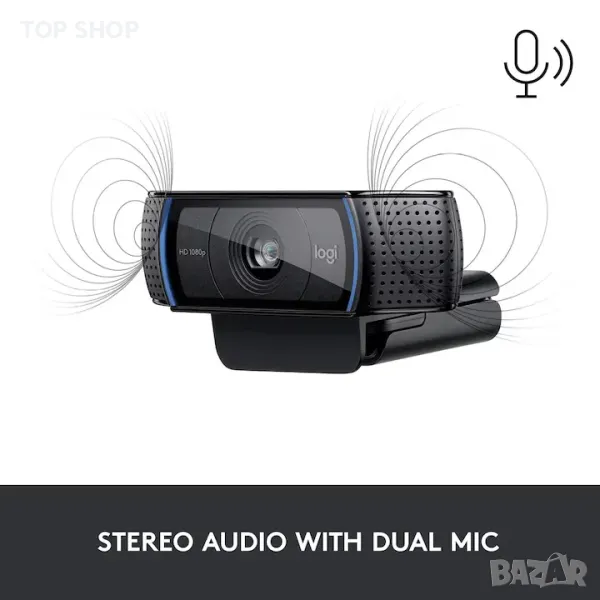 - Пълна стереофоника: Създадена с два микрофона, по един от всяка страна, уеб камерата C920 Pro улавя по-реалистичен звук от всички ъгли, така че гласът ви звучи естествено.