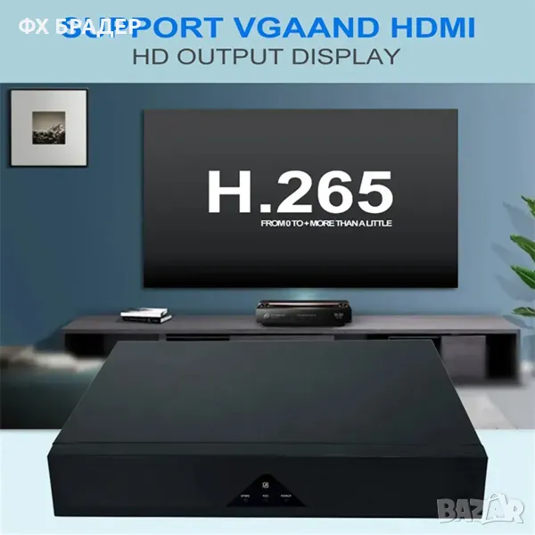 NVR: 1БР. 4-канален рекордер с H.265+ компресия за ефективно съхранение на видеозаписи.