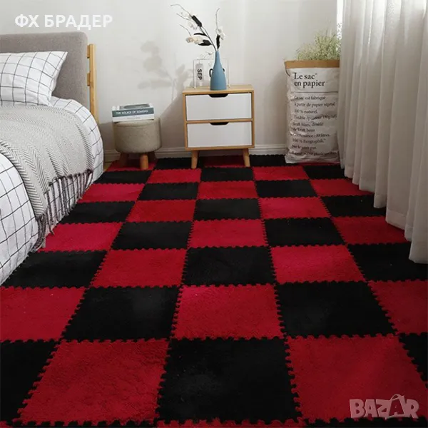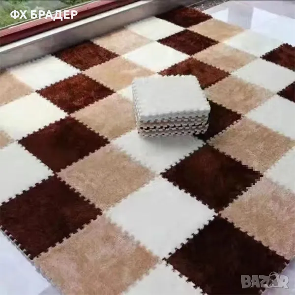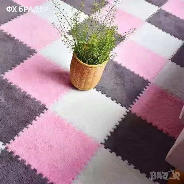 ПРОМОЦИЯ! Плюшена подложка за под от пяна - мек пъзел килим, комплект от 10 части, 30x30x1.2 см