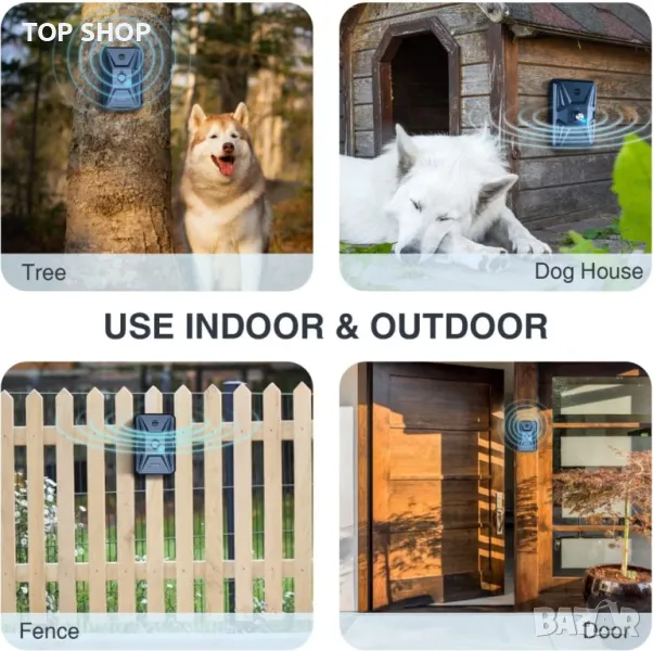 ??【 Спрете кучетата да лаят на закрито и на открито】Това устройство за контрол на лаенето с обширен работен обхват от 33 фута, идеално за спиране на съседи и бездомни кучета, които лаят на открито. Малкият размер и лекото устройство против лай може лесно да се постави на бюро или рафт, за да попречи на вашите кучета да лаят у дома или да се окачи на дърво, стена, ограда под водоустойчиво покритие, за да спре други кучета да лаят