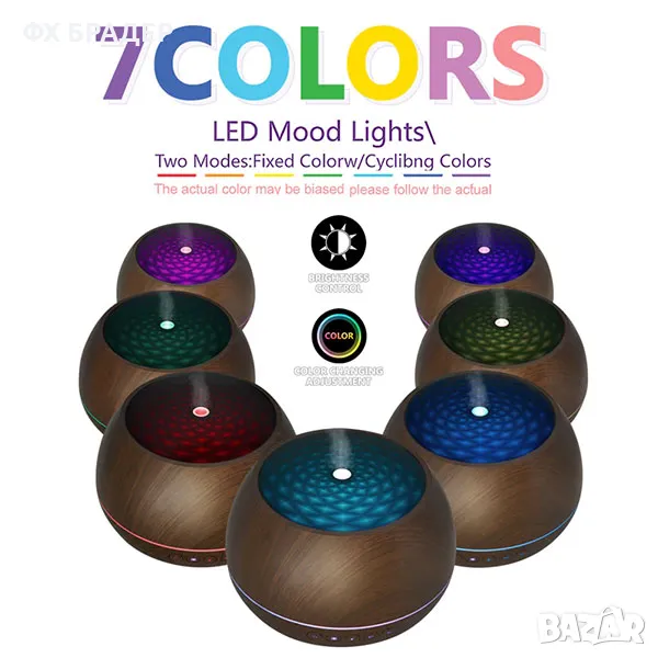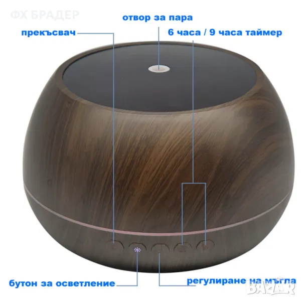 1000ml Арома дифузер и овлажнител тъмно дърво, дистанционно