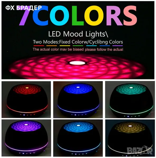 Светлинна индикация 7 цвята - Възможност за избиране на светлина, придавайки на помещението една романтична атмосфера. Всеки цвят светлина има опция за по-ярко или по-бледо осветяване.
