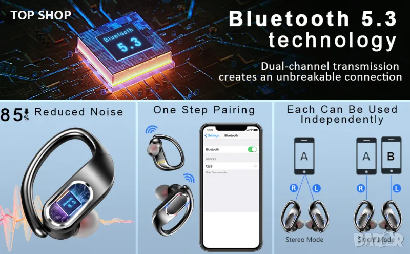2022 Нови Bluetooth 5.3 слушалки: Безжичните слушалки приемат усъвършенстван bluetooth 5.3 чип, ниска консумация на батерия, 2 пъти по-бърза скорост на предаване и стабилен обхват на връзката до 20 метра. Без изкривяване и забавяне, за да направите музиката и телефонните си разговори безгрижни. Просто отворете калъфа и изберете "Q28" от Bluetooth менюто на телефона си, и двете bluetooth слушалки ще се свържат с телефона Ви незабавно. Безжичната слушалка може автоматично да се свърже с вашето устройство след първото сдвояване, което ви позволява да ги използвате без проблеми.