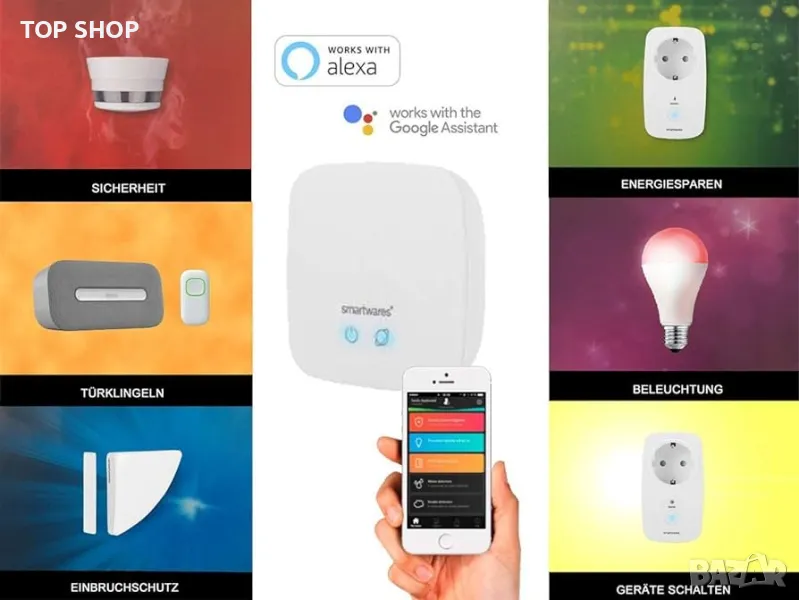 Интересувате ли се от интелигентен дом? С връзката Smartwares sh8-95901 свързвате всички продукти от серията PRO с нашия облак, така че да имате пълен контрол върху продуктите си навсякъде чрез едно приложение на вашия смарт телефон. Управлявайте интелигентните си лампи чрез телефона си или получете известие на вашия смартфон, когато детекторите ви за дим изгаснат. По този начин винаги имате пълен контрол над дома си.
