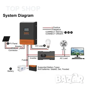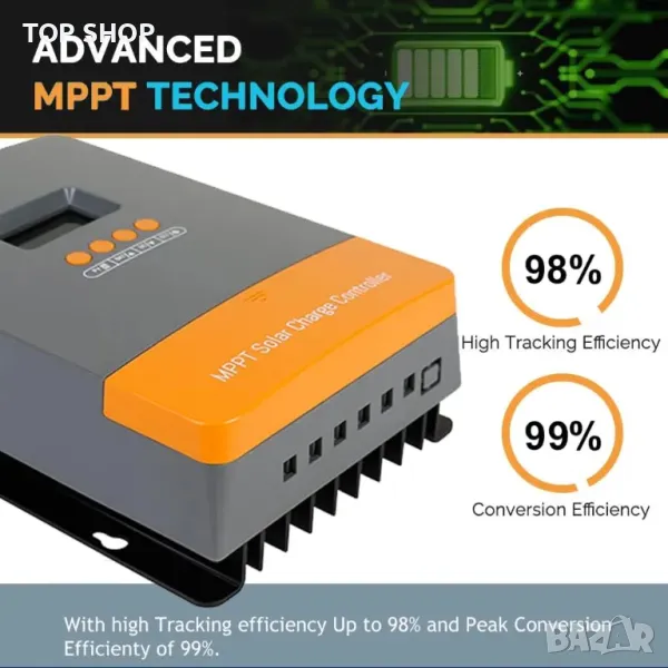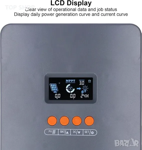 3 ЕТАПЕН РЕЖИМ НА ЗАРЕЖДАНЕ: С постоянен ток (MPPT), постоянно напрежение, плаващ режим на зареждане, MPPT автоматично проследяване на точката на максимална мощност, лесен за работа.
