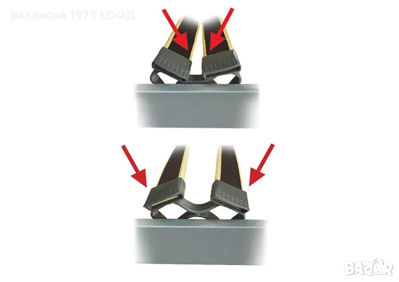 Зона за раменете- чрез по- еластичните ламели и по- меки и пластични обувки се освобождава напрежението в раменете и позволява на врата да остане в изправена позиция.