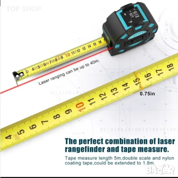 Лазерната лента използва лазерна мярка и ролетка, за да отговори на различни изисквания. С вградения модул за лазерно измерване, точността може да бъде ±2mm