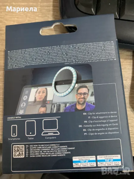 Благодарение на щипката може да бъде прикрепен към различни устройства (смартфони, таблети или компютри). Има три различни режима на осветление и вградена батерия.